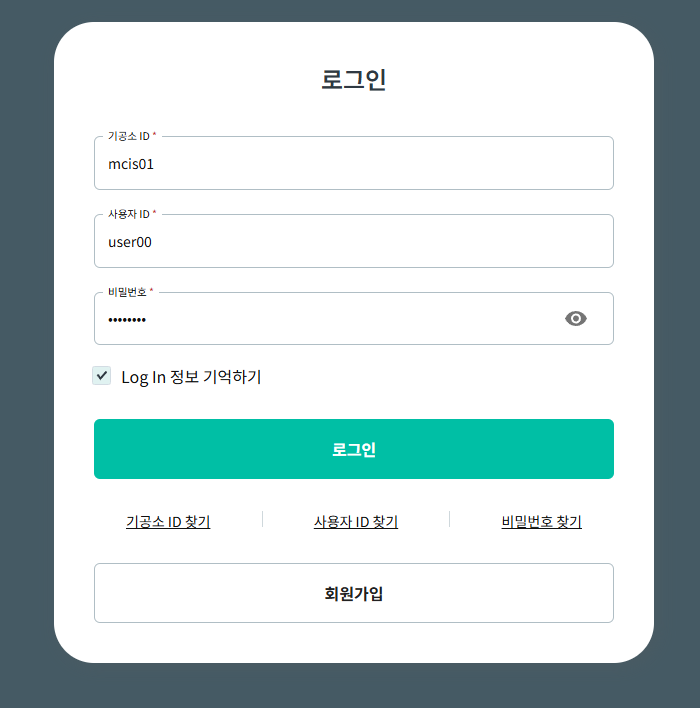 로그인 창 하단에 보이는 기공소 아이디(ID) 찾기, 사용자 아이디(ID) 찾기, 비밀번호(password) 찾기를 통해 확인하시면 됩니다.