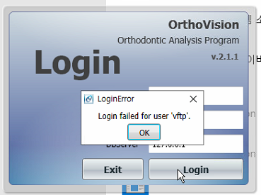 - OrhoVision 2.1.1 Client 업그레이드 후 에러발생 (Login failed for user 'vftp')