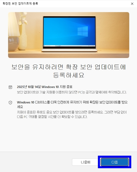ESU 프로그램은 2025년 10월 14일 이후에도 Windows 10 PC를 계속 사용할 수 있는 보다 안전한 옵션을 제공합니다.
