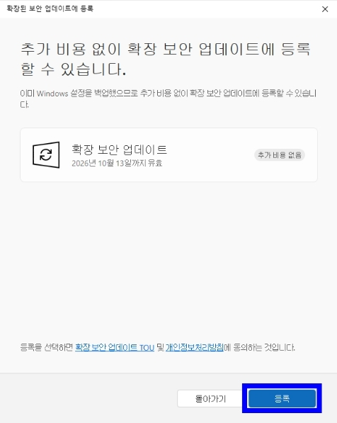 Windows 10 소비자 ESU(확장 보안 업데이트)